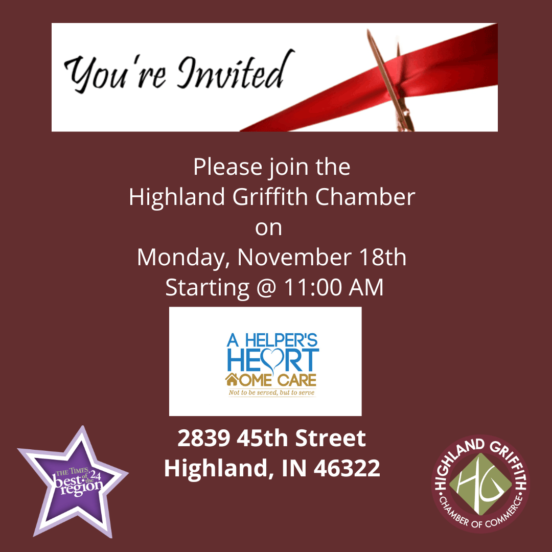 Ribbon Cutting at A Helper's Heart Home Care office at 2839 45th Street in Highland. The ribbon cutting will be 11:00 am.Images